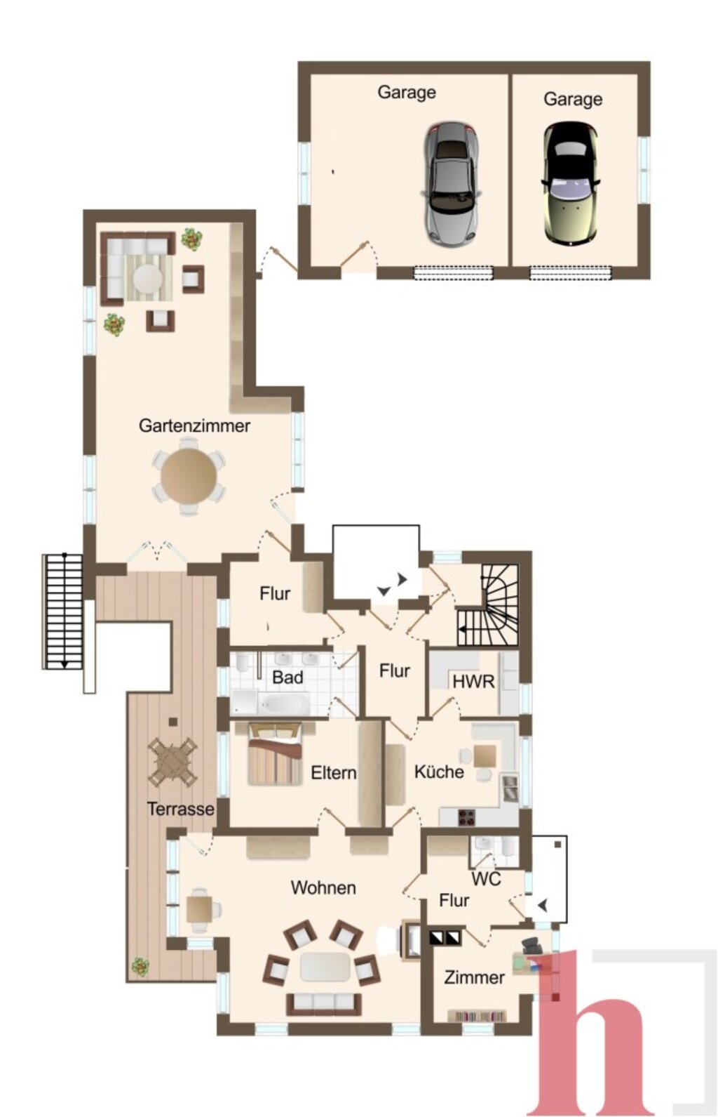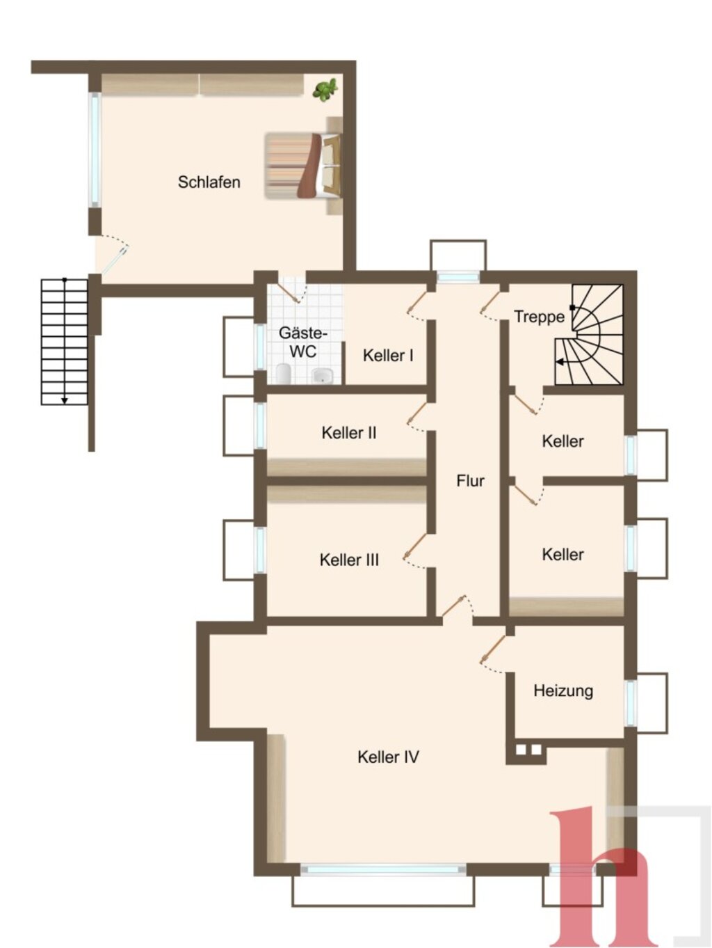 - 7 Räume, Flur, Heizungsraum, G-WC