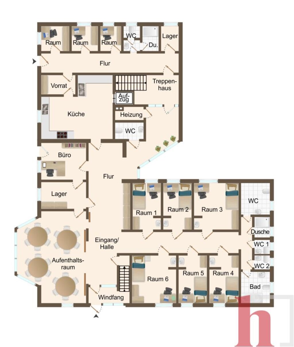 - 6 Pflegezimmer mit Waschgelegenheit, 4 Zimmer,