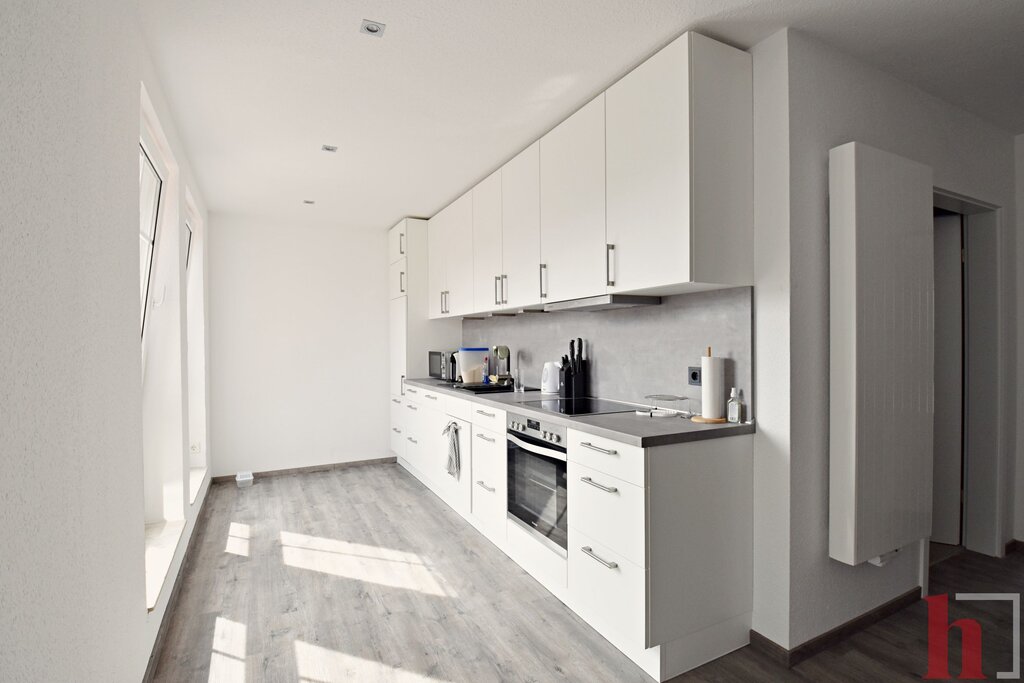 Zwei Zimmer, Kochnische mit Einbauküche, Badezimmer, Flur, Hauswirtschaftsraum, Abstellraum außerhalb der Wohnung, 1 Stellplatz in der Garage