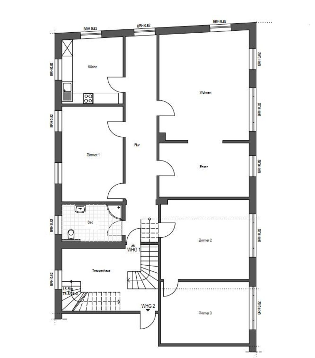 Die Wohnung verfügt über fünf Zimmer, darunter vier Schlafzimmer. Ergänzt wird das Raumangebot durch ein Badezimmer mit Dusche sowie eine Diele.