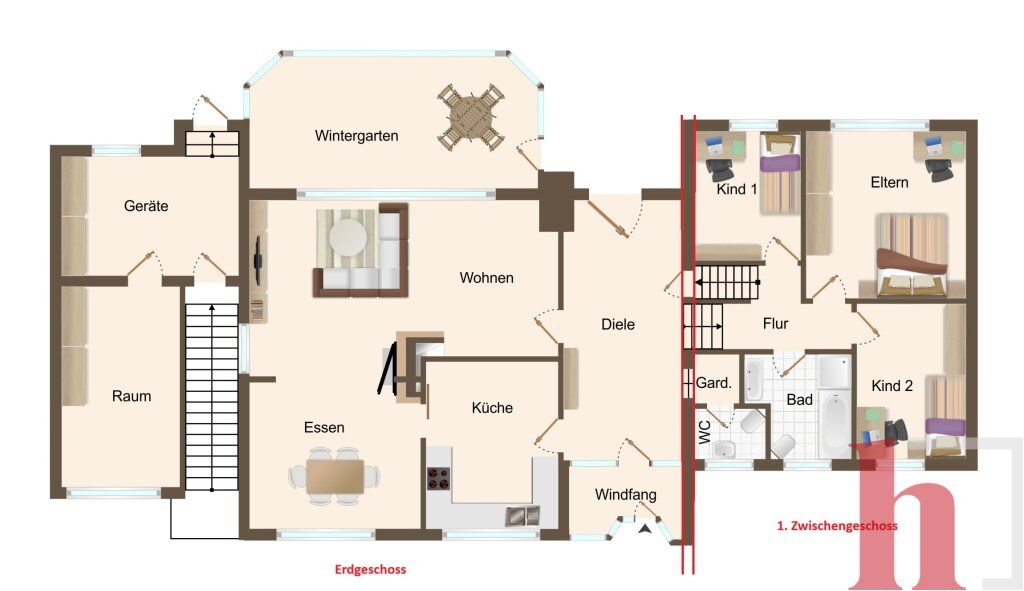 * Erdgeschoss – 1tes Zwischengeschoss: