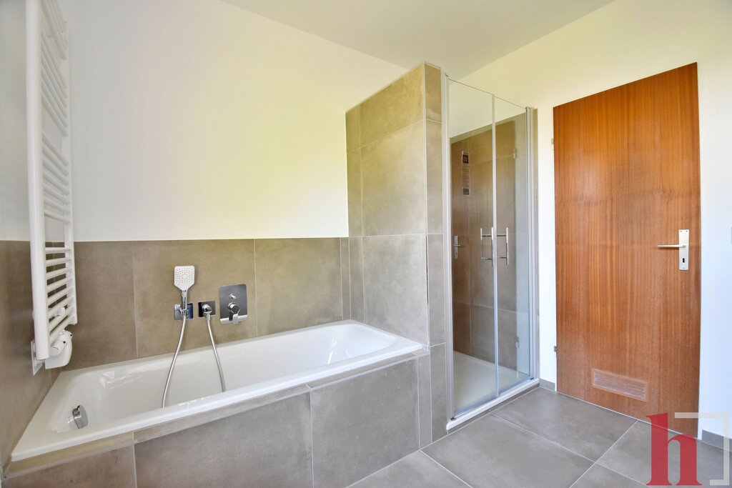 3-Zimmer-Wohnung mit Küche, Bad mit Badewanne und Dusche, Flur sowie praktischem Hauswirtschaftsraum. Zur Wohnung gehören außerdem ein Balkon, ein Kellerraum und ein Kfz-Abstellplatz.