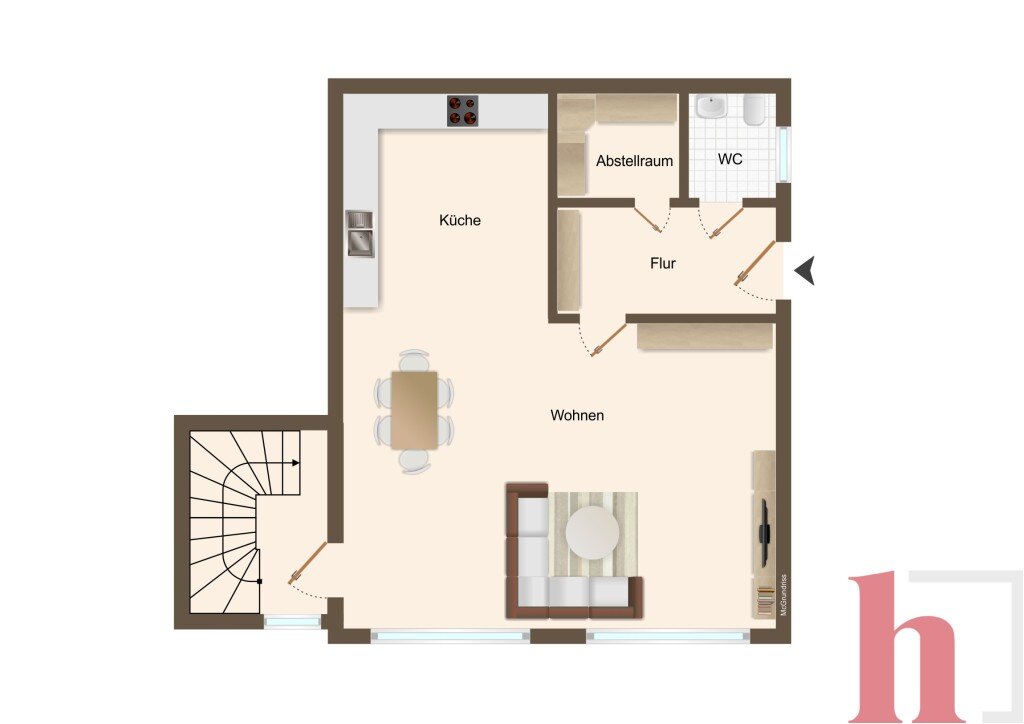 - Wohnen/Küche, Flur, Abstellraum, WC